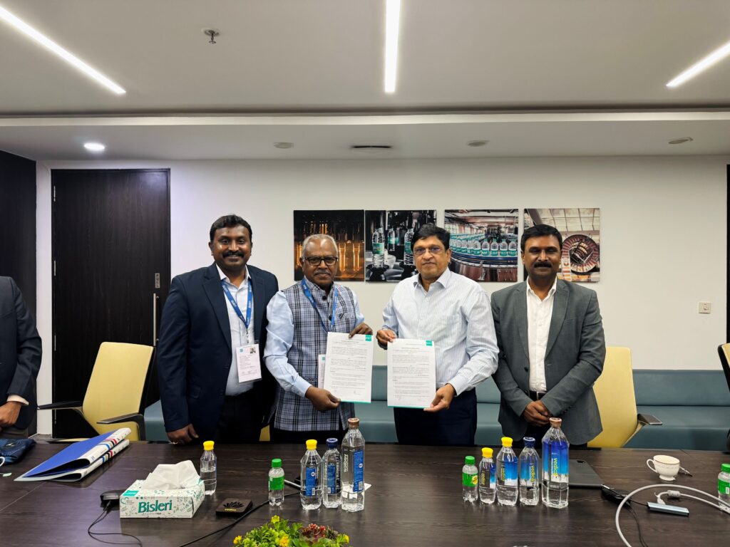 The MoU was signed by Mr. Angelo George, CEO of Bisleri International, and Mr. Sankar K, Chairman of Shree Renga Polyester, in the presence of Mr. K. Ganesh, Head of Sustainability and CSR at Bisleri International, and Mr. Senthil Sankar, Managing Director of Shree Renga Polyester and Co-founder of EcoLine Clothing.