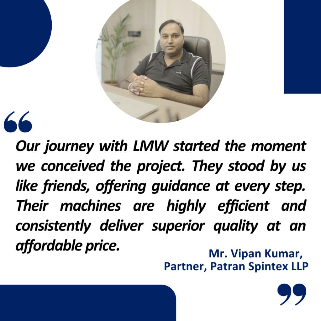 From the very inception of the project, LMW played a pivotal role in shaping Patran Spintex’s journey. Right from technology selection to plant commissioning, LMW served as a true partner, offering expert guidance that helped streamline every critical decision.