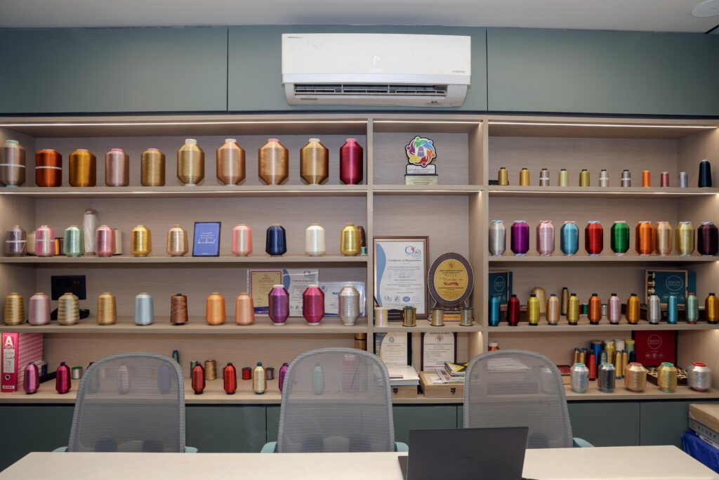 In 2021, Adlon Industries decided to foray beyond Surat to other parts of India and also to other countries. “To do so we participated in several exhibitions pan-India and also in other countries. Alongside, we also set up a R&D department to develop new metallic zari yarn qualities. We also hired a technically qualified team in the same period. By 2022, we had 95 TFO’s which has reached 125 TFO’s now and our production capacity is 250 tons per month. Our base yarns are polyester, nylon and viscose,” he added.