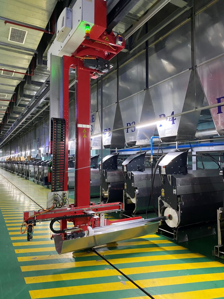 At ITMA ASIA 2025, IGH and IG Automation also introduced several new automation solutions designed to reduce manual workloads on the shop floor. One such innovation is an automated doffing system for the DTY area, which eliminates labor-intensive intervention.