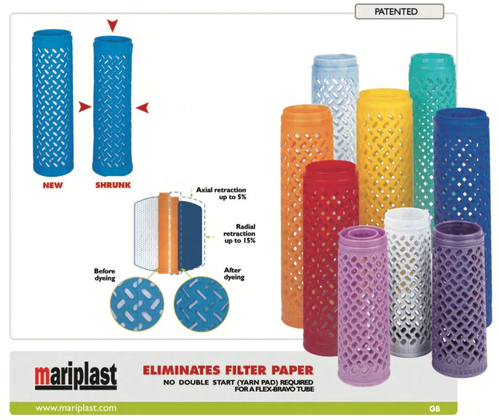 Some of the company’s recent innovations have further strengthened its capabilities. The Bravo tube increases package density and enhances plant efficiency, especially in filament spinning. The FlexBravo tube, which is currently one of Mariplast’s strongest offerings, is a shrinkable carrier designed to overcome the density variations that often affect dyeing quality from inside to outside. These innovations help mills improve production efficiency while reducing wastage and ensuring consistent fabric quality.