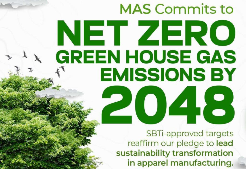 MAS Holdings, a global apparel & textile manufacturing conglomerate headquartered in Sri Lanka, has announced that it has committed to reducing its total global greenhouse gas emissions (GHG) to net zero by 2048. The company made this announcement after receiving official validation of its Net-Zero and Near-Term goals from the Science Based Targets initiative (SBTi), marking a milestone in delivering the MAS Plan for Change, the company’s groupwide sustainability strategy.