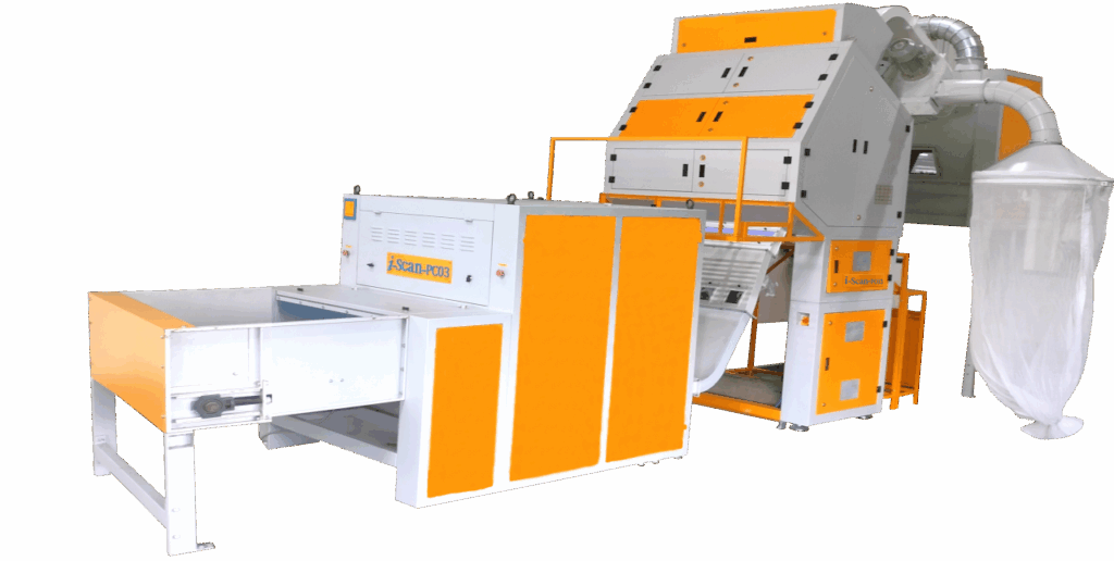 This customised, state-of-the-art experience redefines how mills recover good fibre from ejected cotton. Ejected cotton with contamination is processed for mild pre-opening. Smart-feeding system ensures regulated feed of ejected cotton for better opening of fibres. During mild opening, trash, Seed coats present in the fibres falls down and opened fibres with contamination pass-through high resolution scanning elements where contamination (Colour and White PP) will be detected, ejected and collected separately. Good fibres are sucked through fibre separator and get dropped from where it is taken forward for baling or further process. Expected cleaning efficiency of contamination is around 80 to 90%, at the production of 50kg / hour.