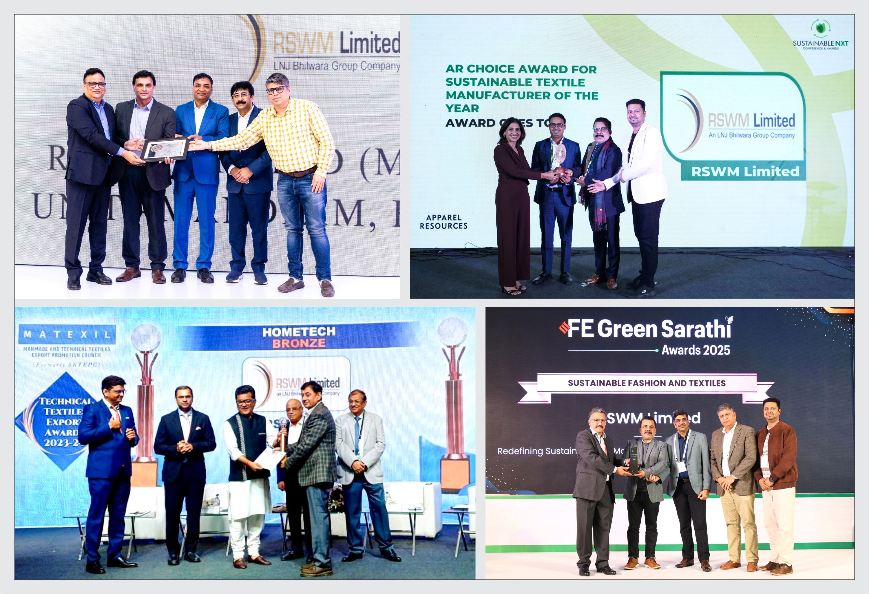 At the 3rd edition of SustainableNXT 2025, RSWM was conferred with the AR Choice Award for Sustainable Textile Manufacturer of the Year, recognizing its integrated approach to sustainability across materials, energy, water stewardship, waste reduction and ethical manufacturing processes.