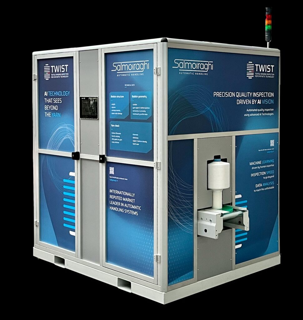 Today, the company is taking a further step by eliminating one of the last phases of human intervention in the man-made fiber bobbin handling cycle. This is being achieved through automated visual inspection systems that leverage advanced vision technologies integrated with AI software—marking a significant leap in consistency, accuracy, and productivity.