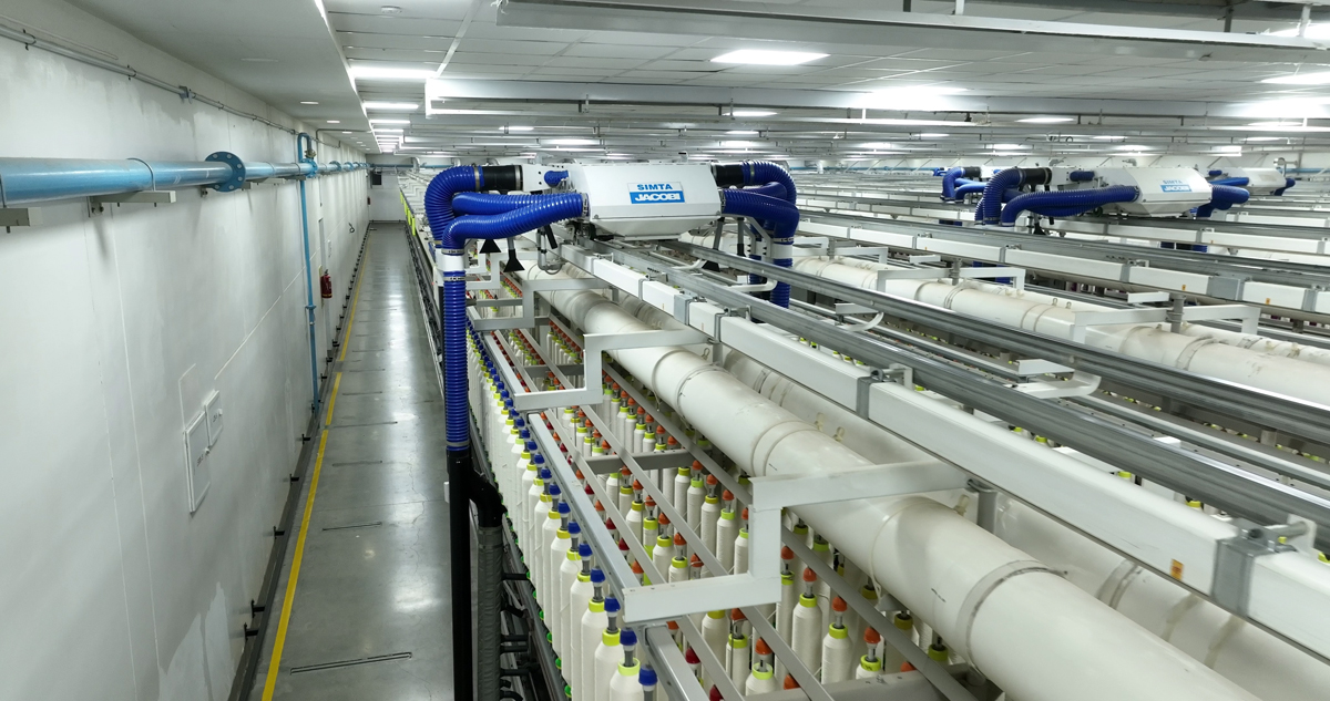 Simta’s story is not just one of survival and growth but of bold diversification. In 2010, the company introduced the Bobbin Transport System (BTS), quickly becoming a market leader. By 2016, it launched its automatic cone transport system. Come 2025, it has launched its automatic cone packing system.