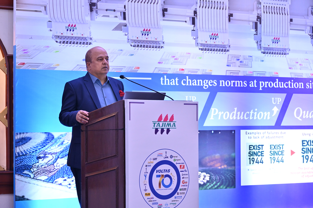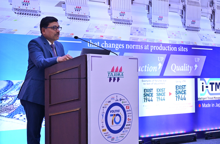 The keynote address was delivered by Mr. Pradeep Bakshi, Ex-MD & CEO of Voltas Limited, who shared insights on India’s growing appetite for advanced textile automation. Mr. Nobumasa Asai, Department Head at Tajima Japan, extended his greetings to the audience, followed by a presentation from Mr. Hiroki Washimi, Sales Department, Tajima Japan, who showcased Tajima’s latest innovations. Mr. Karmaveer Singh Rathore, Head – Regional Operations & Tajima Product Head, provided an overview of the division’s growth journey, while Mr. Nizar Ali, Head of Post Spinning Division, introduced the Tajima India team and elaborated on the company’s future plans for the Indian market.