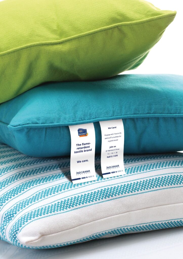 Memorable interaction & giving back: The WE CARE highlight activity invites Heimtextil visitors to stuff these pillowcases using permanently flame-retardant fibers provided by Indorama Ventures. This hands-on process allows participants to truly appreciate the fabric’s “hand” and craftsmanship.